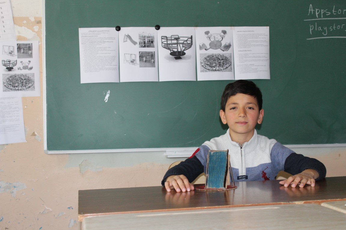 ჩვენი კომპლექსური დავალების პირობა იყო საბავშვო ბაღისთვის გასართობი ცენტრის დაგეგმარება. ამისათვის უნდა გასართობი სათამაშოები წრის ფორმის მუყაოზე გაგვეკეთებინა, მე გავაკეთე ჩამოსასრიალებელი, ლამაზი პარკი გამოვიდა.