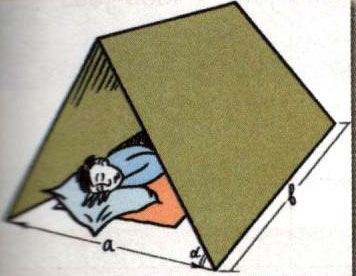 (a/2)/x=cosa დამოკიდებულებიდან. x=a/2cosa (მ). სულ კარვის სახურავს დასჭირდება ab/cosa კვადრატული მეტრი ქსოვილი.საჭირო ფორმულები: