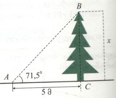 სურათზე მითითებული ზომების მიხედვით ვიპოვოთ ხის სიმაღლე.სურათის მიხედვით გავქვს tg71,5°=x/5;