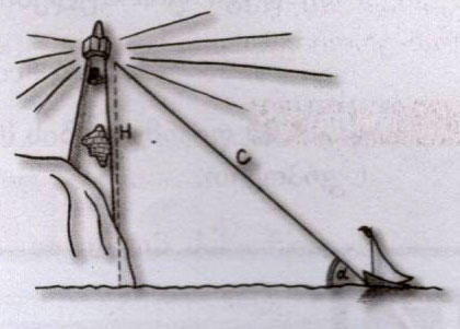 ცნობილია შუქურის H სიმაღლეზღვის დონიდან და ზღვაძე მოძრავი გემის მიმართულებით გაშვებული სინათლის სხივის დახრის a კუთხე (ამ კუთხის გასაზომი სპეციალური ხელსაწყოები არსებობს). ამ მონაცემებით განვსაზღვრავთ გემამდე c მქნძილს:C=H/sina